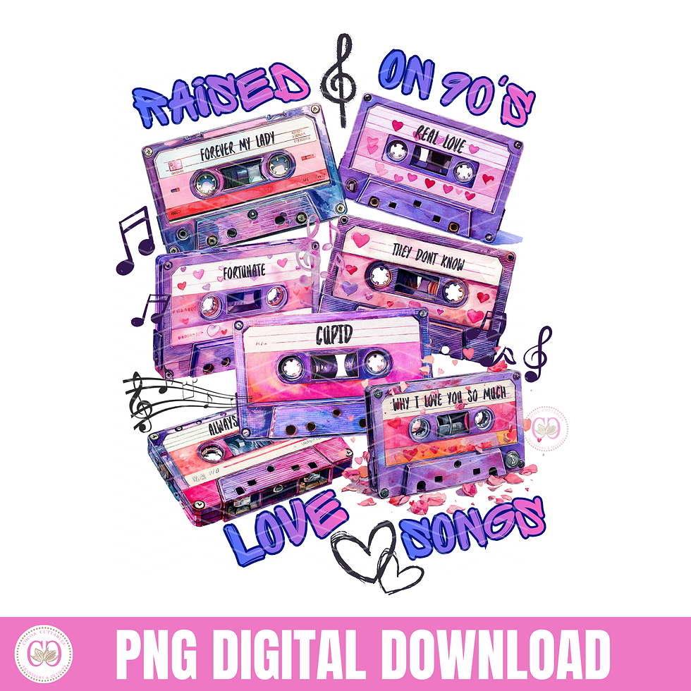 Raised On 90s Love Songs Cassette Tape, Retro Love Mixtape Trendy Valentines Png